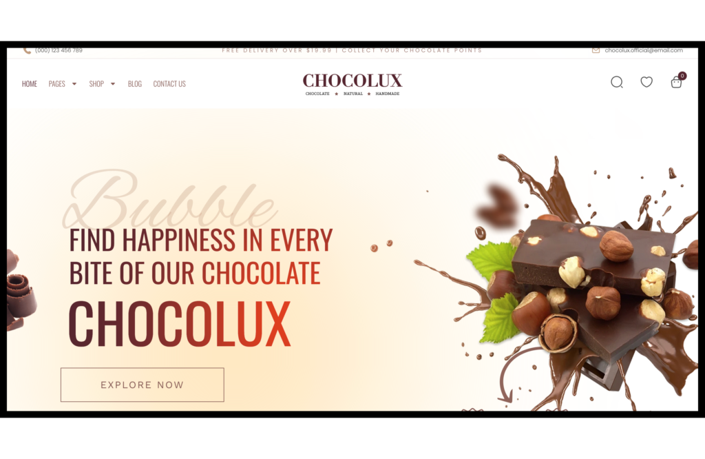 I am proud to present Chocolux, a premium online storefront I developed for my client on the platform WordPress using a beautifully crafted Chocolate & Candy Shop WooCommerce Elementor. This site showcases enticing visuals and rich descriptions of chocolate products, designed specifically to attract chocolate lovers and boost online sales.